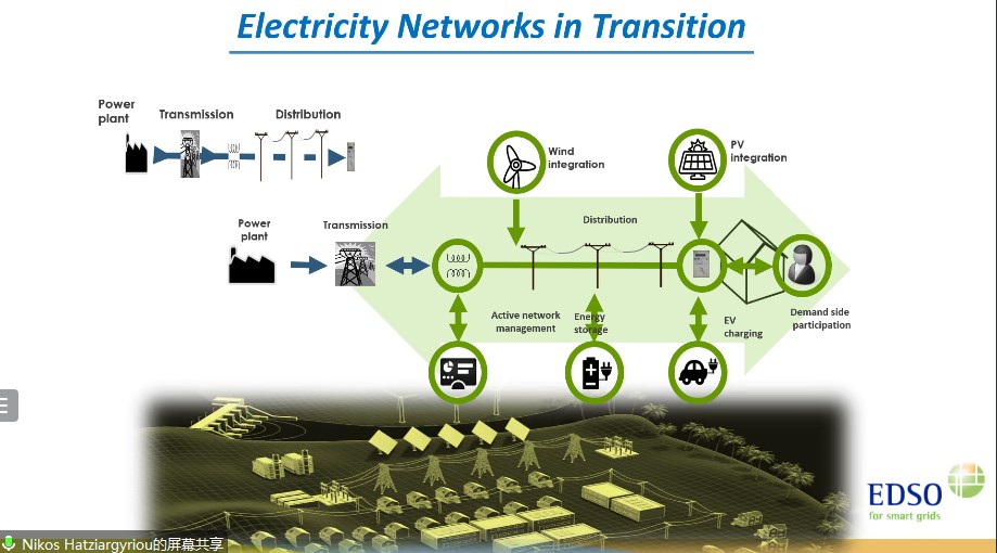 Nikos Hatziargyriou教授首先介绍了分布式能源渗透对配电网的影响。随着分布式能源的发展,供需平衡日益成为一个地方性问题,为了避免本地电网拥塞,智能配电网必须能够在市场上获得足够的灵活性。