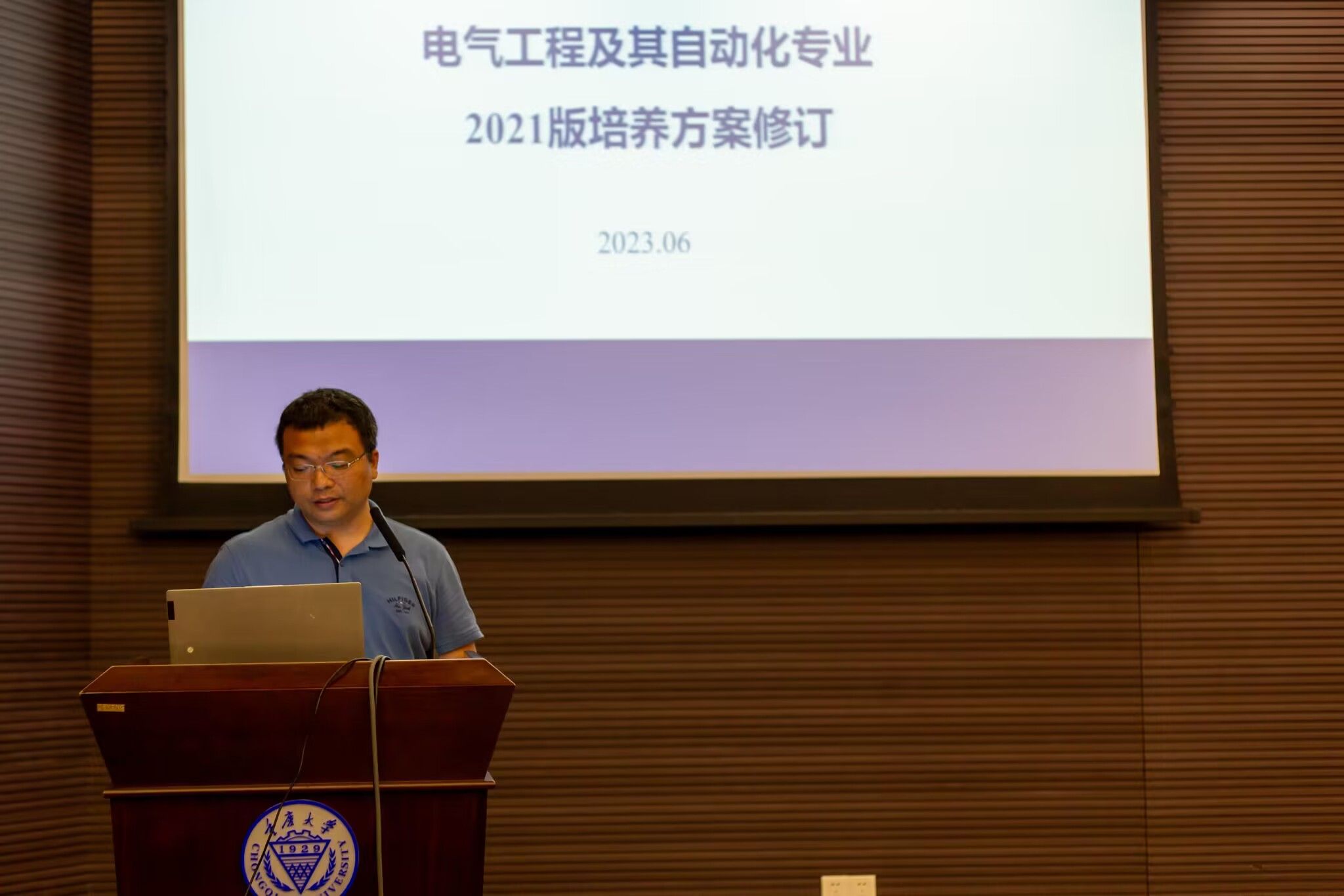 王强钢老师介绍了电气工程及其自动化专业2021版培养方案,他首先介绍了修订的指导思想,接着王老师详细介绍了培养目标与毕业要求设置,并对 五楼自拍