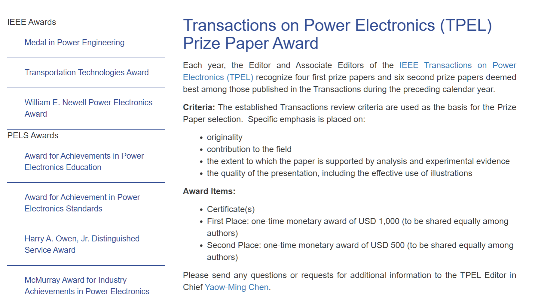该重要奖项旨在表彰在原创性、撰写质量和潜在应用价值方面突出的论文。该刊2022年度论文奖由国内外知名电力电子专家投票和评审委员会的评审最终确定,从全年正式出版的1292篇论文中产生First Place Prize Paper 5篇、Second Place Prize Paper 9篇和Prize Letter 2篇。