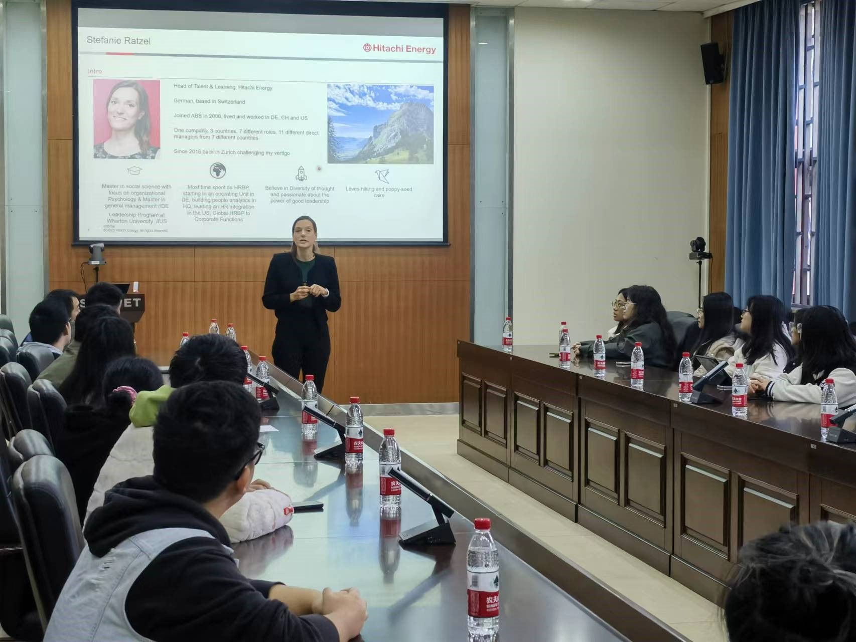座谈会结束,日立能源在6119开展了一场主题为"让生命的能量在美好职场飞扬"的精彩讲座。Stefanie Ratzel以自己的登山经历为喻,生动地阐释了她在职业生涯中所得到的启发。鼓励同学们结合个人实际情况,选择适合自己职业发展路径,努力攀登职场高峰。