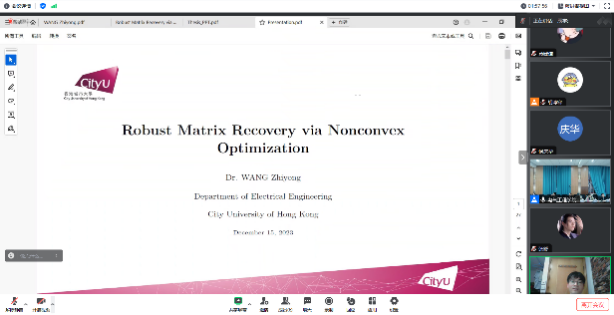 接着,电力系统及其自动化系教师代表杨知方教授做学术报告。杨知方就高比例新能源电力系统做了相关介绍,分享了构建电力系统机组组合的物理特征以及电力系统特征对分支定界的影响机理,并与参会的青年学者交流了相关看法。