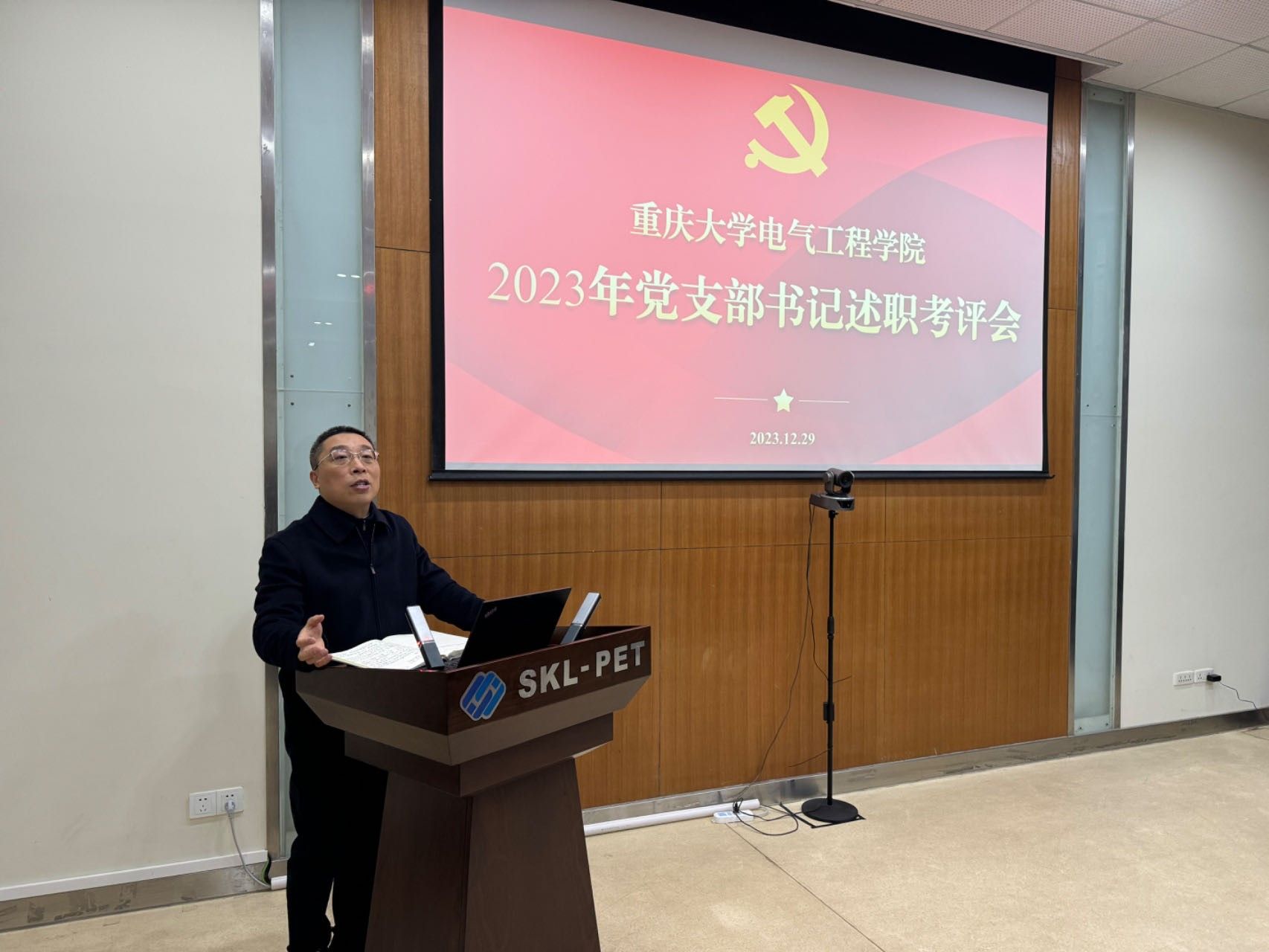 开展2023年学院党支部书记抓党建述职评议会。学院党委书记胡建林,党委副书记、纪委书记王晓静,党委副书记吴嘉,党委委员王明渝及院内31个党支部书记参会。会议由胡建林主持。
