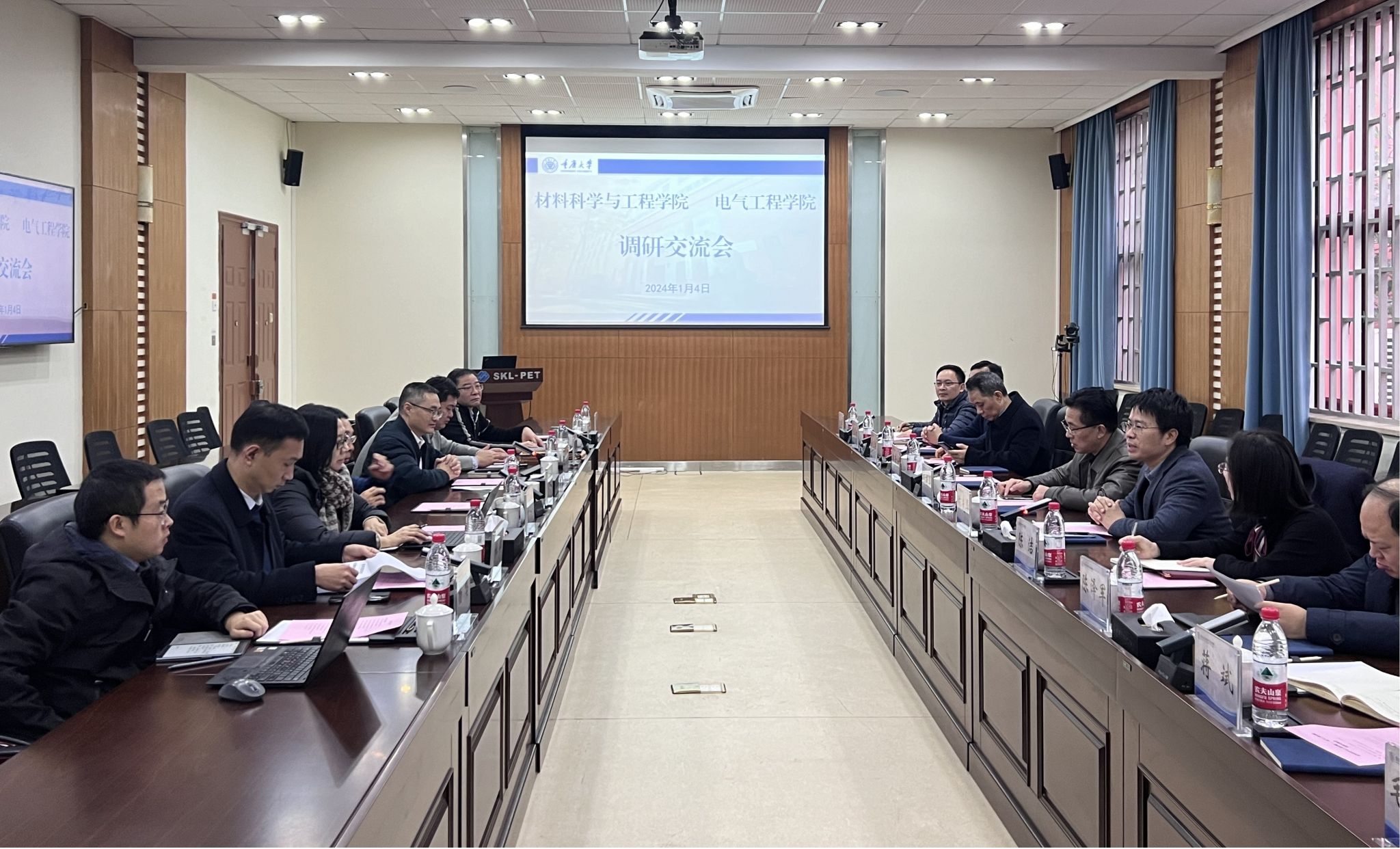 材料学院党委副书记陈洁,副院长谢卫东、陈泽军、陈厚文、龙木军,国家镁合金材料工程技术研究中心专职副主任蒋斌和电气学院党委副书记王晓静、吴嘉,副院长杜雄、杨鸣,输变电装备技术全国重点实验室副主任李辉以及双方办公室相关同志参加了本次交流会。