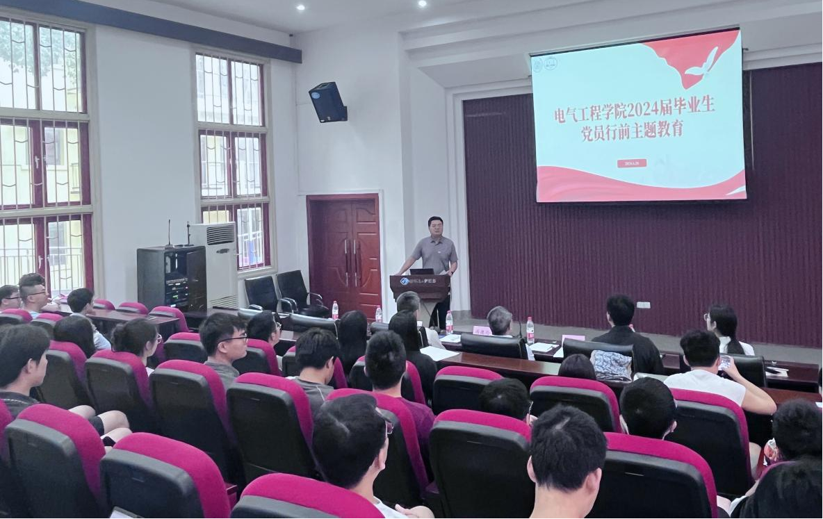 于2024年6月26日14:30在A区6117会议室举行2024届毕业生党员行前主题教育活动。学院党委书记胡建林、党委副书记吴嘉、国网重庆市南供电公司劳模创新工作室主任冯德伦、毕业生辅导员胡力方、穆峰、学生支委及全体毕业生党员参加活动。活动由学院党委副书记吴嘉主持。