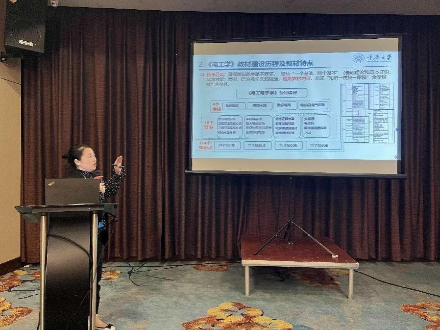 电工学课程负责人周静在教材建设分会场做专题报告,以五楼自拍