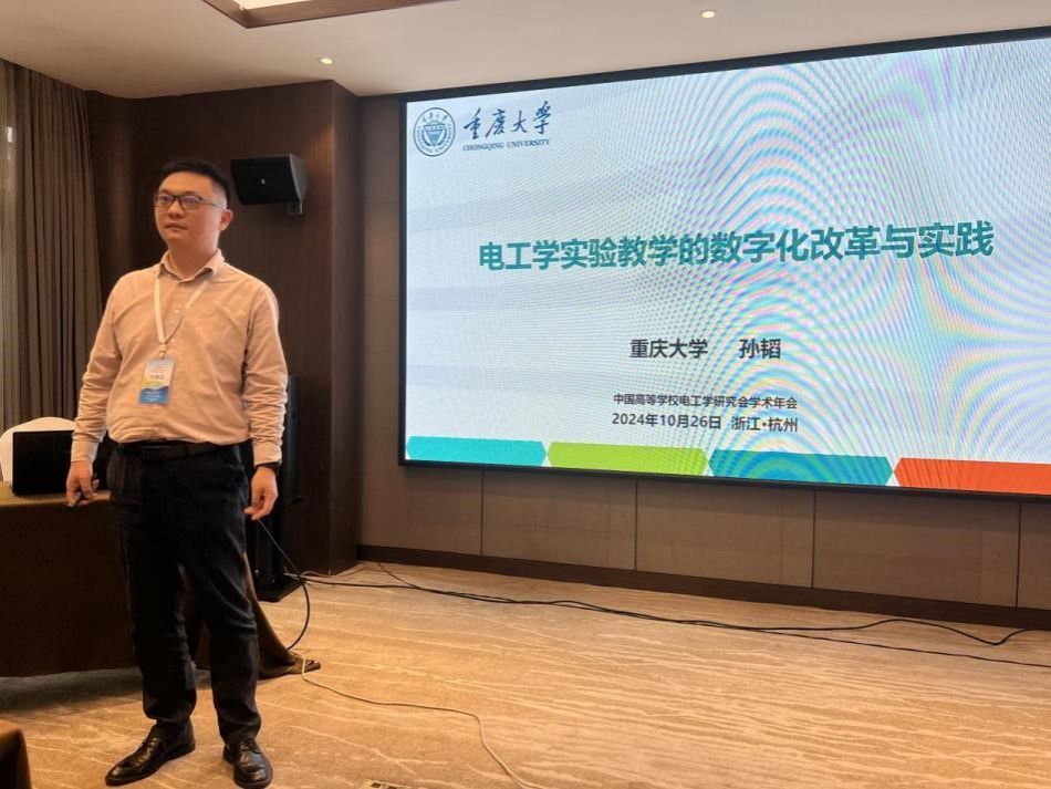 电工理论与新技术实验室主任孙韬为大家分享了“电工学实验教学的数字化改革与实践”,报告从五楼自拍