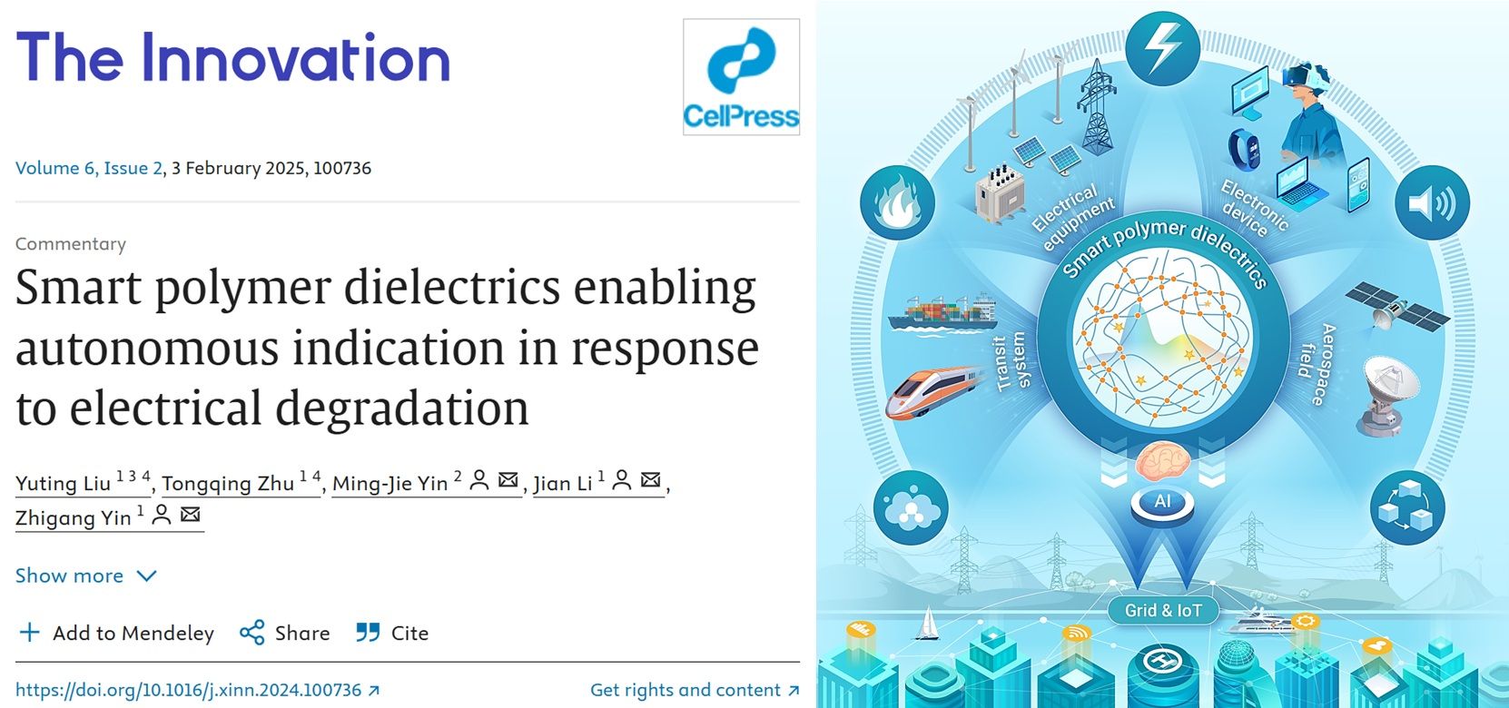 /输变电装备技术全国重点实验室先后在国际顶级综合期刊The Innovation发表2篇电气前沿交叉学术论文成果。首先,尹志刚教授课题组与北京工业大学殷明杰教授、五楼自拍
