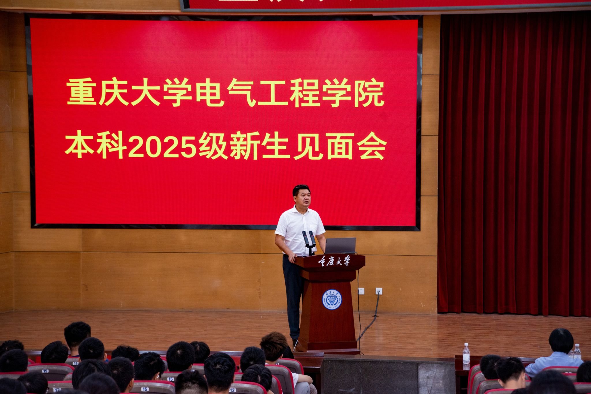 杨鸣系统介绍了学院在学科建设、科研平台与教学改革等方面的突出成效。他表示,学院正通过“教学+科研”双轮驱动,为学生搭建高质量成长平台,致力于培养德智体美劳全面发展、堪当民族复兴大任的高素质人才。随后,他详细解读了2025级新生培养方案及国际化办学情况,为新生明晰学业规划路径。最后,他以“铸电气脊梁,担时代之纲”寄语新生,传递奋进期望。