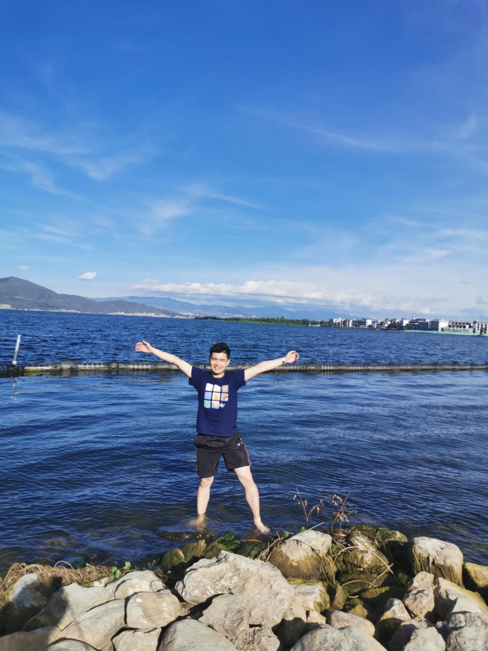 在学习科研之余,他积极参与体育锻炼,2021年作为五楼自拍