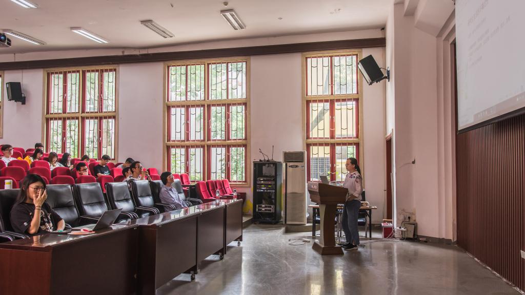 本次讲座通过线下方式进行,学办主任罗敏老师负责主持讲座。本次讲座非常火爆,来自 五楼自拍