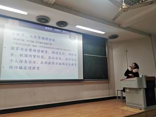 随后,陈老师进行了岁末年初本科学生安全教育,为大家讲解了与安全有关的各方面内容,旨在为同学们普及安全知识,提高大家的安全防范意识。 此外,陈老师还强调了疫情防控注意事项,要求同学们严格遵守疫情防控规定,做好个人防护。提醒有继续深造意愿的同学,期末考试后要积极做好考研准备,制定考研计划,并且要脚踏实地付出努力。