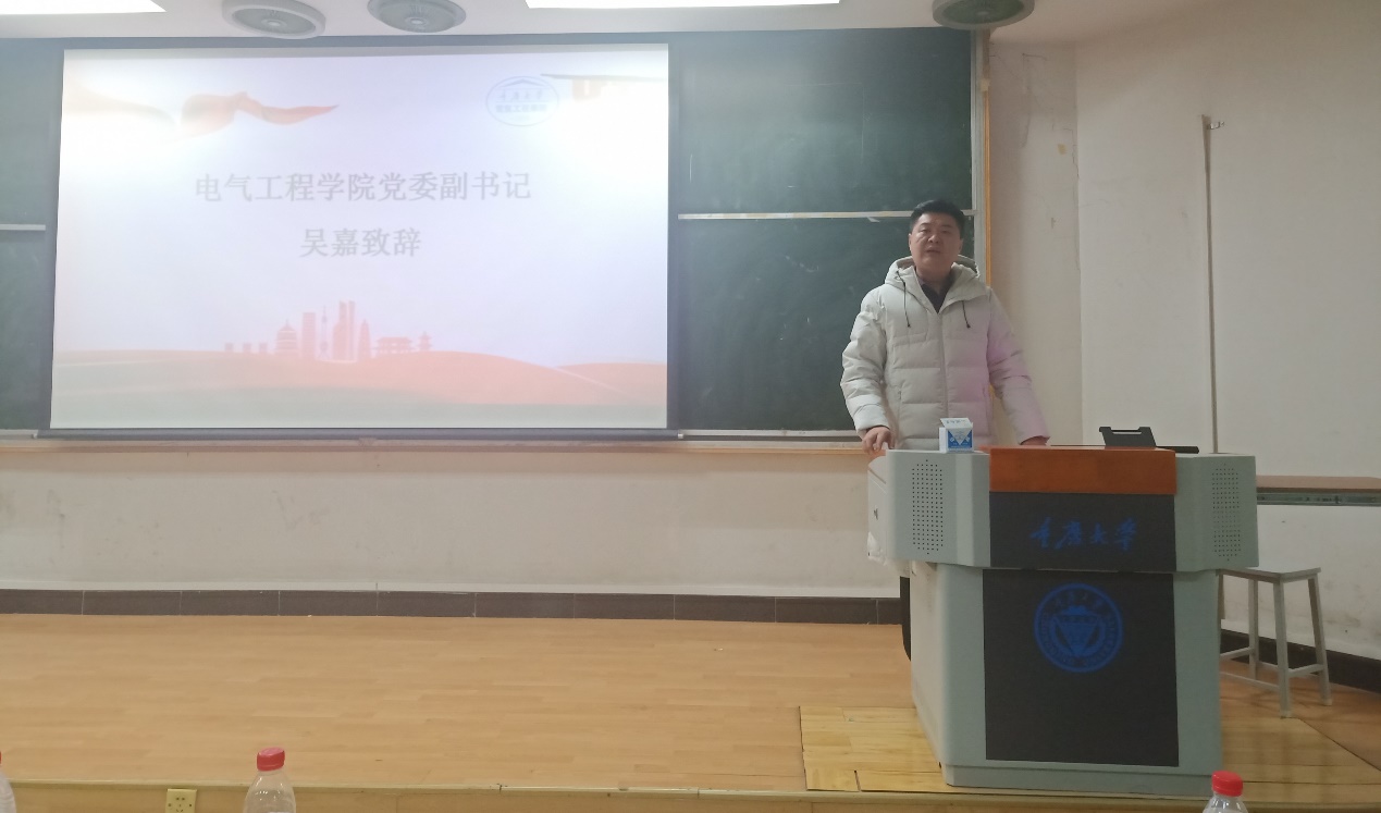 最后,由学院党委副书记吴嘉发表讲话。吴书记先向荣获“特高压电网奖学金”的各位同学表示衷心的祝贺,并明确了特高压电网奖学金的设立对电气学子和电力事业的价值和意义。他指出,荣获“特高压电网奖学金”不仅是对学生专业学习能力的极大肯定,更是对学生成长成才的激励和未来方向的指引。吴书记鼓励在场所有同学要用实际行动积极发扬奋斗精神,不忘初心,砥砺前行。希望同学们能够胸怀大志,求真务实,做好当下的每一件事,回馈社会,努力成为对电力事业发展有所贡献的人。