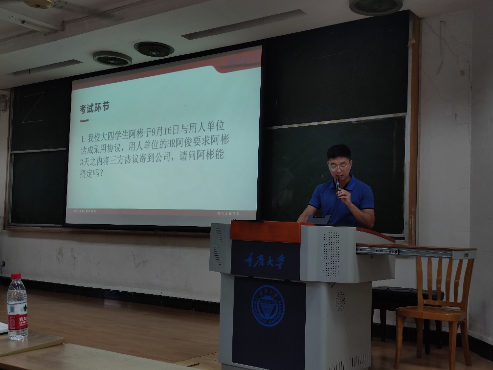 辅导员王祥老师进行就业工作部署,详细解说了就业签约流程和注意事项,并对学生的疑问进行了解答。
