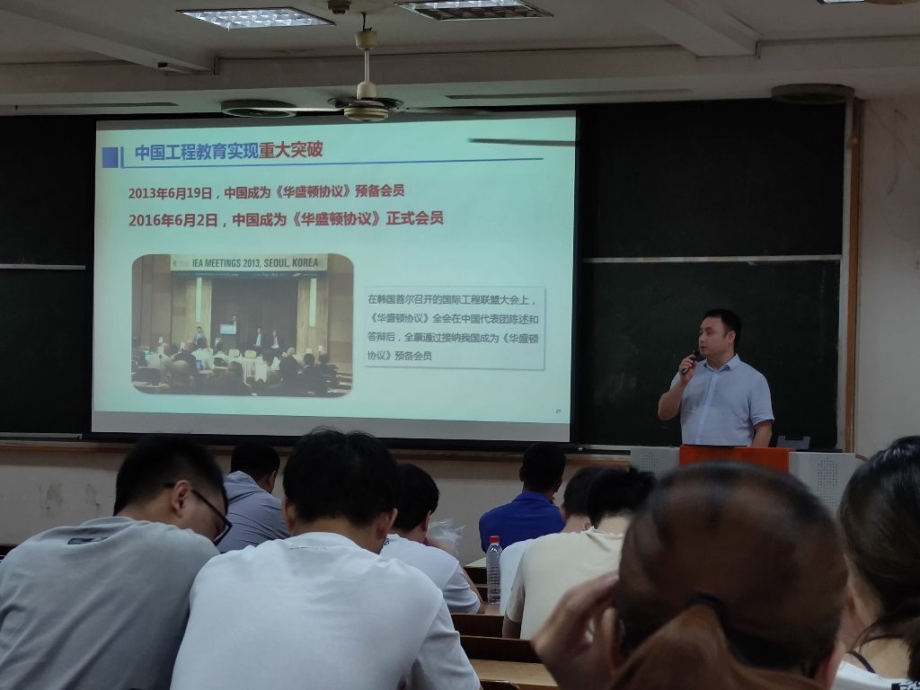 杨帆院长向大家介绍了工程教育专业认证的内涵和外延,强调了它将在学生未来生涯发展中起到的重要作用,杨帆院长逐一为同学们讲解工程教育专业认证的核心理念:学生为中心的教育理念、“产出导向”的教育体系以及“持续改进”的质量观。其中“产出导向”的教育体系主要体现在专业学生在毕业五年后需要达到学院的培养目标。杨帆院长特别强调,2018级本科学生作为专业认证培养要求全程贯彻的一届学生,应以浓厚的兴趣和强烈的责任感参与学院的工程认证,始终如一的贯彻学院的培养理念,努力塑造自我。