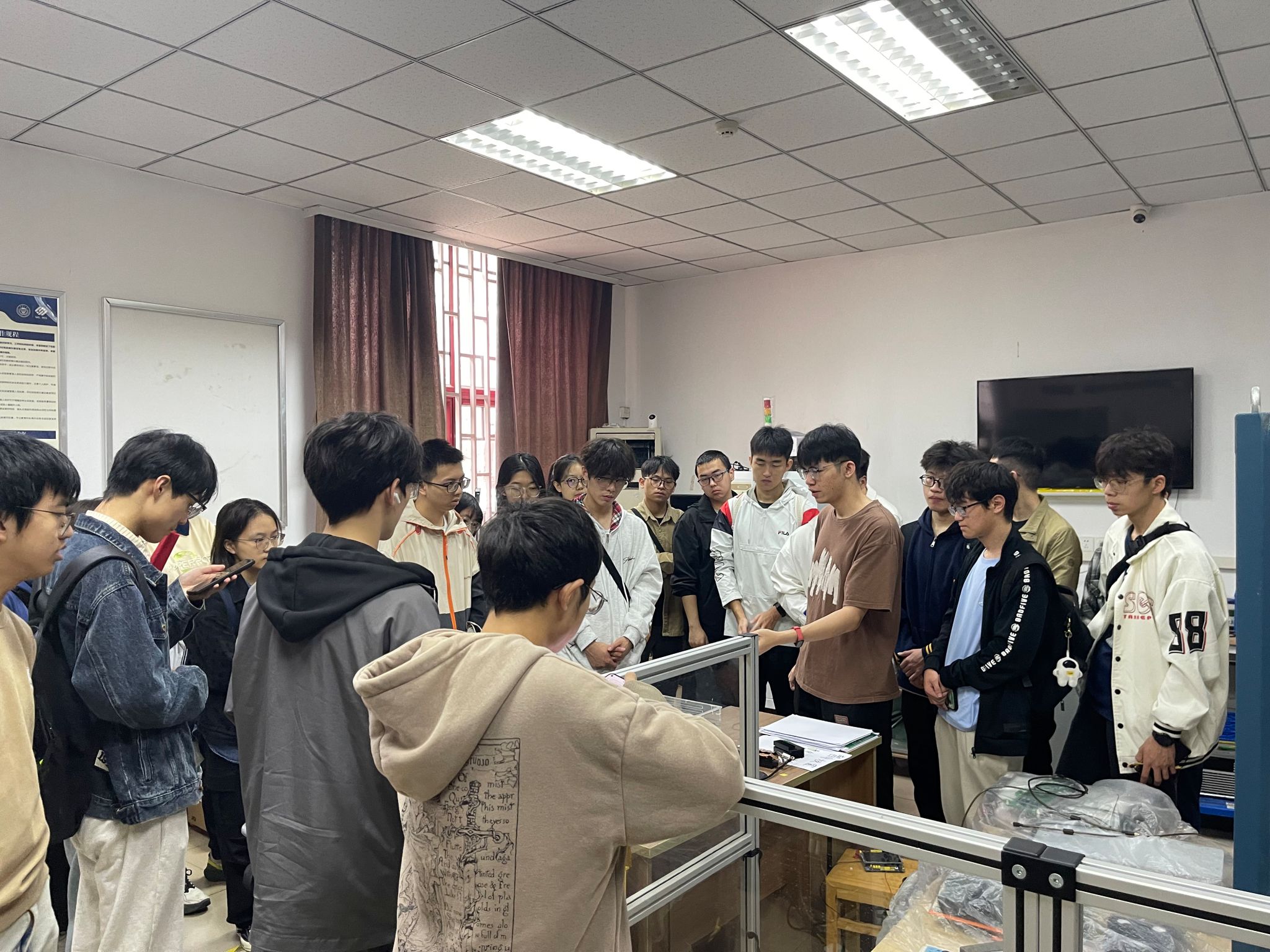 与国外知名大学联合的课题,也有正盛行的新能源汽车相关技术,我第一次距离未来要从事并将投诸其中一生的行业这般近,也感受到学长们在介绍时为学院、为学科骄傲的情绪。”2023级5班李天宇在参观结束时说。