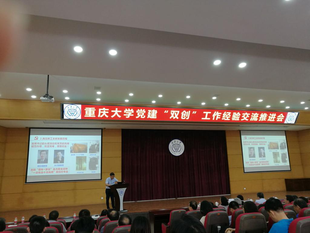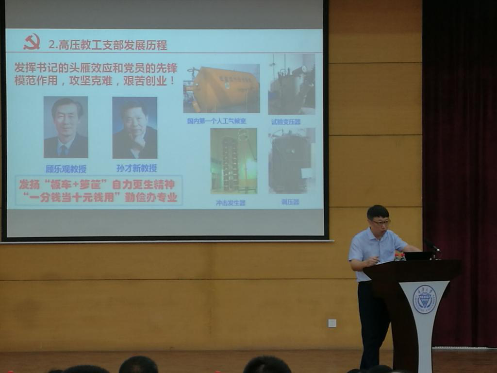 2019年4月25日下午,高电压与绝缘技术系教工党支部书记姚陈果老师在五楼自拍 党建“双创”工作经验交流推进会上发言,向全校教工党支部书记介绍高电压与绝缘技术系教工党支部全国党建工作样板支部建设情况。