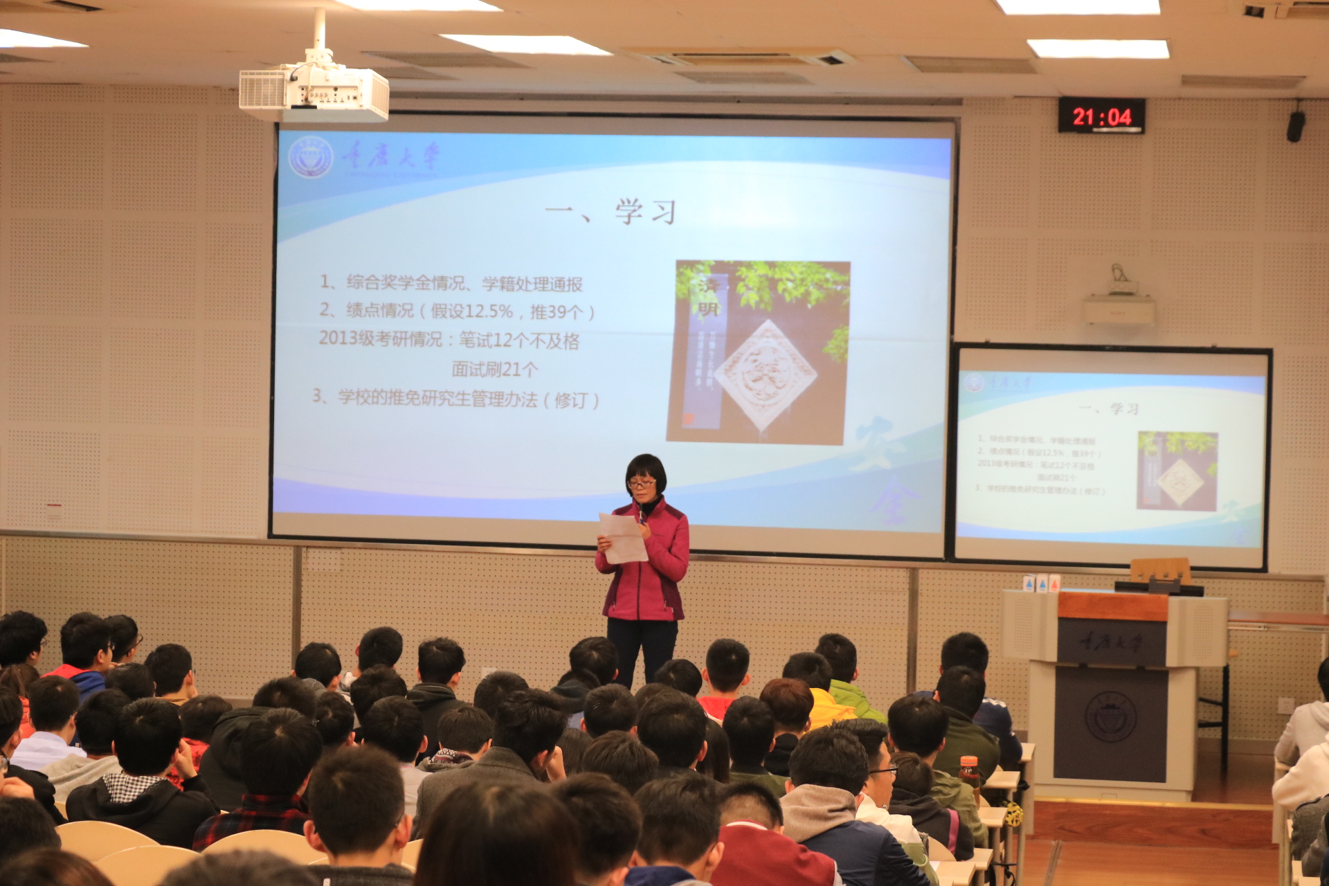 2016年12月19日晚9时, 五楼自拍 2015级年级大会在虎溪校区D1137召开,电气学院本科2015级全体同学参加了大会,会议由15级辅导员罗敏老师主持。