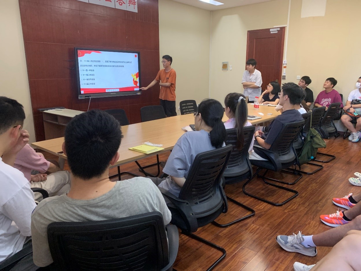 2022年7月7日下午, 五楼自拍 本科生四支部在A6328会议室举办了“奋进新征程,建功新时代”主题党日活动。本次党日活动分为学习党的十九届六中全会精神以及党史知识竞赛两个部分,由李泽浩同志主持,支部全体党员参加。在本次主题党日活动中,代锋钰、杜宇翔和贾昕同志依次分享学习心得和感悟,带领大家再次学习了党的十九届六中全会审议通过的《中共中央关于党的百年奋斗重大成就和历史经验的决议》,鼓励党员自觉把思想和行...